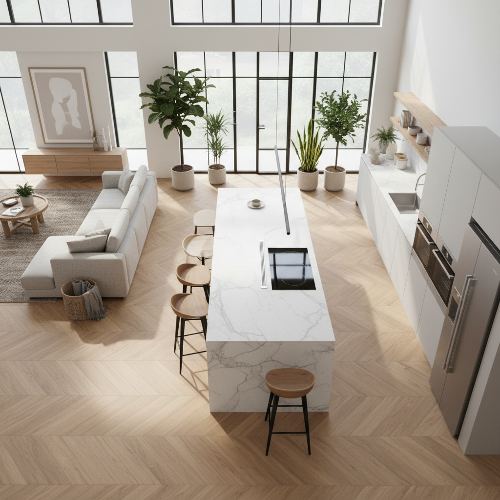Para lograr una estética moderna y duradera en estos espacios integrados, destacan las siguientes opciones: